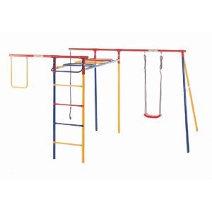 Metal swing set with board swing monkey bars trapeze and climbing rope Metal play set with vertical ladder monkey bars board swing pull-up bar and climbing rope Fade and rust resistant powder coat finish Compatible with Kettlers Baby Swing Seat and Board Swing ONLY Sold Separately Playset m Read More..