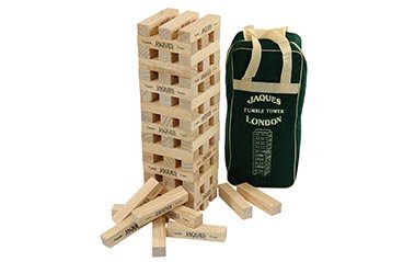 A superb giant-sized version of this popular indoor game Jaques Giant Tumble Tower can build a tower over 4 feet tall Handcrafted using New Zealand pine from sustainable sources and complete with canvas carry bag Jaques Giant Tumble Tower is a great game for the whole family Block size 210 x 47 Read More..
